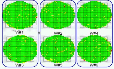 Các sơ đồ phân bố xác suất chế tạo thành công của wafer (Yield wafer maps) cho chip SRAM có tích hợp công nghệ SONOS được so sánh với sơ đồ tương ứng công nghệ nền được mô tả trong Hình 7. Kết quả trong hình này cho thấy tác động không đáng kể của việc tích hợp SONOS lên công nghệ nền.