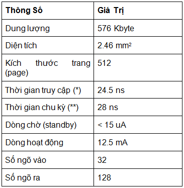 (*): Thời gian truy cập: là khoảng thời gian tối thiểu giữa lệnh đọc và ghi/xóa.