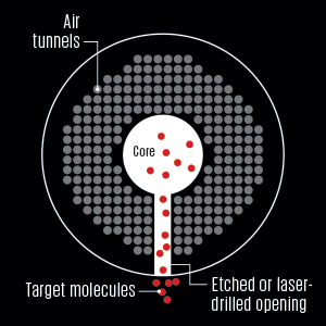Ý tưởng này không phải là hoàn toàn viển vông. Chìa khoá để đạt được điều đó sẽ là các sợi quang—ít nhiều tương tự như những sợi quang đang lan toả khắp địa cầu và chuyển tải vô số dòng dữ liệu và hội thoại với tốc độ không gì sánh kịp. Đường kính cực nhỏ, chi phí rẻ bèo, và khả năng mang thông tin cực lớn làm cho những sợi quang này trở thành nền tảng lý tưởng để chế tạo các cảm biến hoá học chất lượng cao với giá thành thấp.
