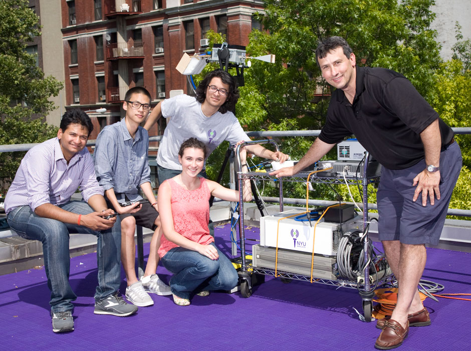 Khi thử nghiệm những bộ thu phát millimeter-wave trong thành phố New York đông đúc các sinh viên đã tìm ra rằng sóng ở tần số cao, khoảng 28 GHz và 73 GHz, có thể có ích cho việc truyền và nhận dữ liệu hơn là người ta vẫn tưởng. Hình: Marian Goldman/NYU